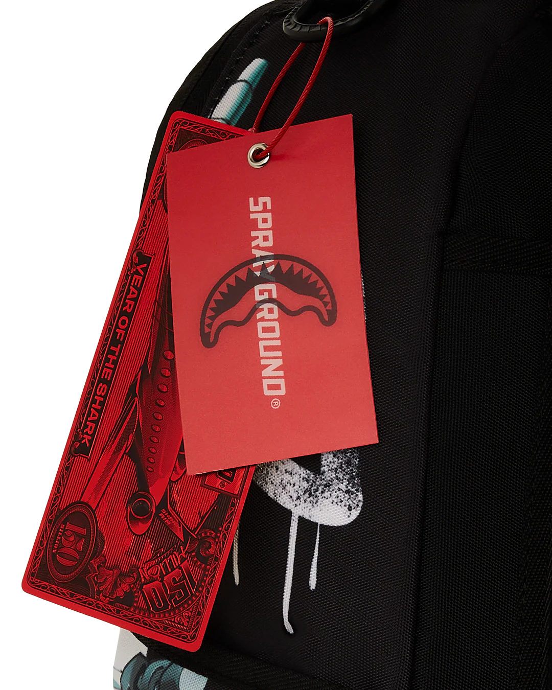 Dimensions: 18" x 6" x 11.5" • Front zipper pocket • Side pockets • Zippered Stash pocket • Separate velour sunglass compartment • Ergonomic mesh back padding • Adjustable Straps for custom sizing • Gold zippers with metal hardware • Metal "Sprayground Authentic" badge • Slide through back sleeve connects to carry-on luggage to free your hands